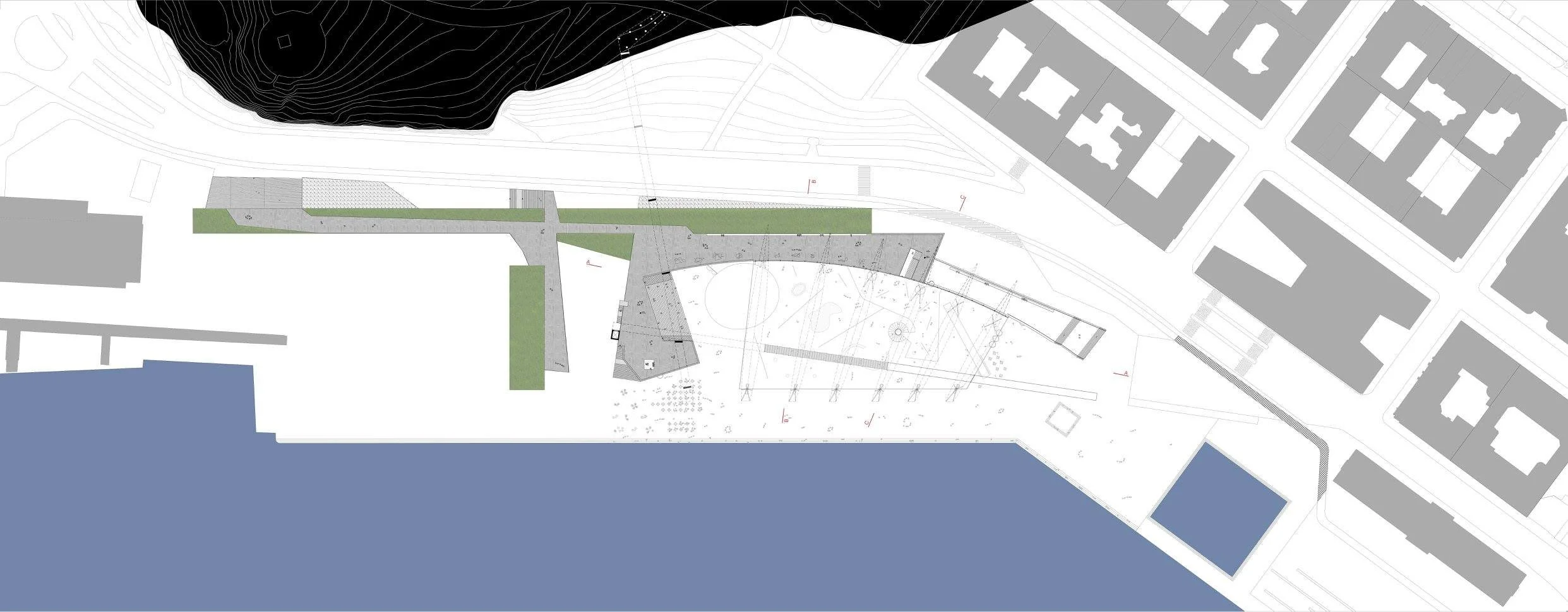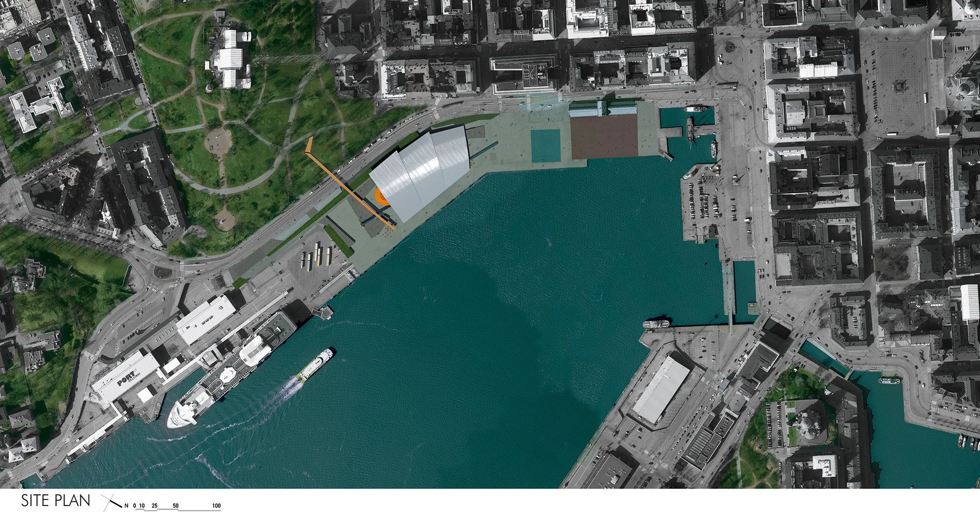 As aproximações ao sítio do novo museu consideram a situação privilegiada destinada ao Guggenhein Helsinki, entre a cidade, o mar, o cais do porto, o velho mercado e o Tähtitornin Vuori Park, com vistas para água, paras as docas e os landmarks. Realizou-se uma cuidadosíssima leitura para a sua implantação, integrando-o harmoniosamente a esse conjunto.
