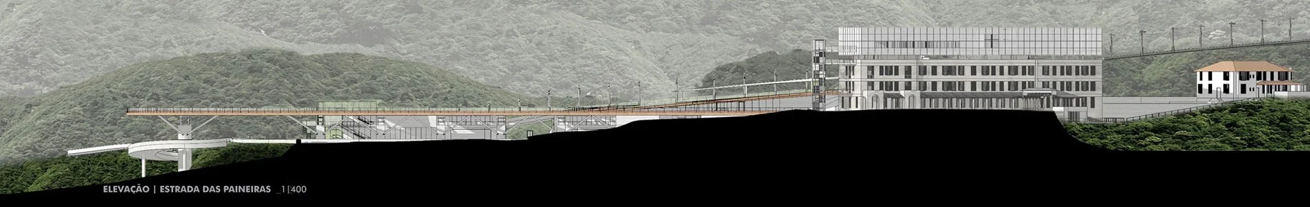 Mais do que a revitalização do antigo Hotel Paineiras – situado no Parque Nacional da Tijuca –, o projeto objetiva a implantação de um complexo que contempla vários serviços como hospedagem, disseminação cultural e turística, além de servir como ponto de passagem para o Corcovado. A protagonista é a imensa flora que proporciona paisagens exuberantes. Como explica a equipe do Estúdio America, “o programa é organizado de acordo com as possibilidades das edificações existentes, priorizando sempre a lógica de utilização integral dos espaços e a evidente opção pela paisagem. Ao mesmo tempo, é conveniente a clara demarcação das épocas das intervenções a partir da recuperação das construções originais que receberão novas funções anteriormente não disponíveis”.