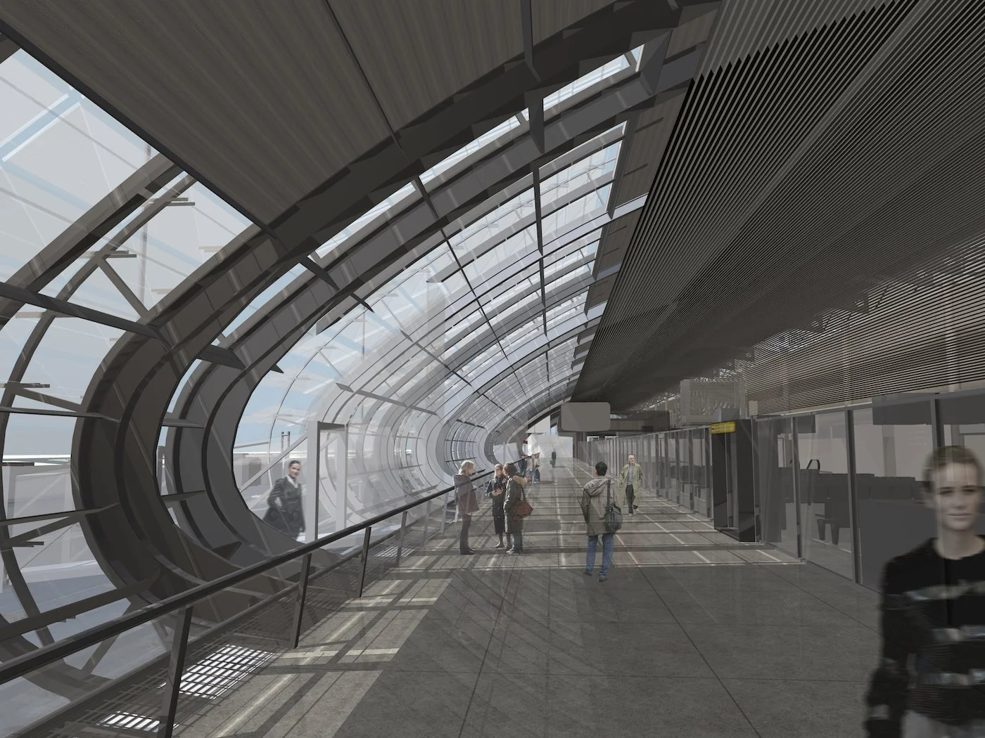 O projeto desenvolve a ocupação do sítio por terminais lineares ao longo do limite interno do novo pátio de aeronaves. O solo aeroportuário é um recurso escasso. No caso de Florianópolis, por tratar-se de uma ilha, essa economia é impositiva, de forma a perenizar o atual sítio aeroportuário, convenientemente próximo do centro de negócios e das atrações turísticas. O Terminal projetado é compacto, visando à economia de custos e operacionalidade eficiente, razoavelmente verticalizado conforme prevê o Edital do Concurso. Evitou-se grandes afastamentos do pátio de manobras, de forma a reservar para o futuro imponderável o máximo de terreno remanescente da plataforma disponível.